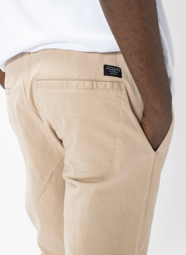 Find comfort in the Tan Barney Cools B.Slim Elastic Chino. Our casual chino with a stretch cotton construction and drawstring waist - perfect for everyday wear and tidy enough to mimic a formal pair of constructed chinos.