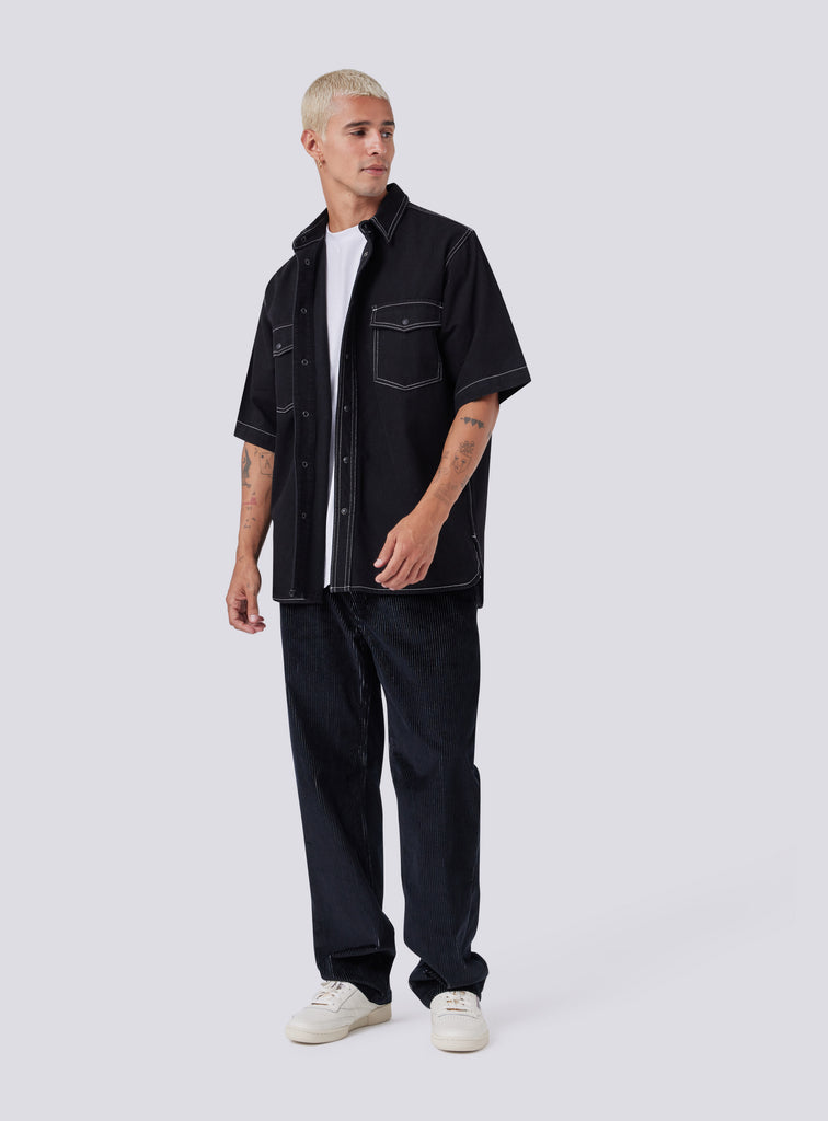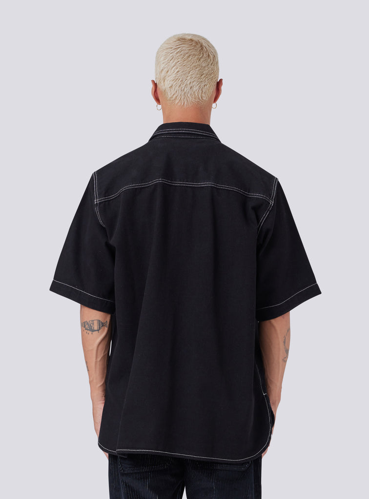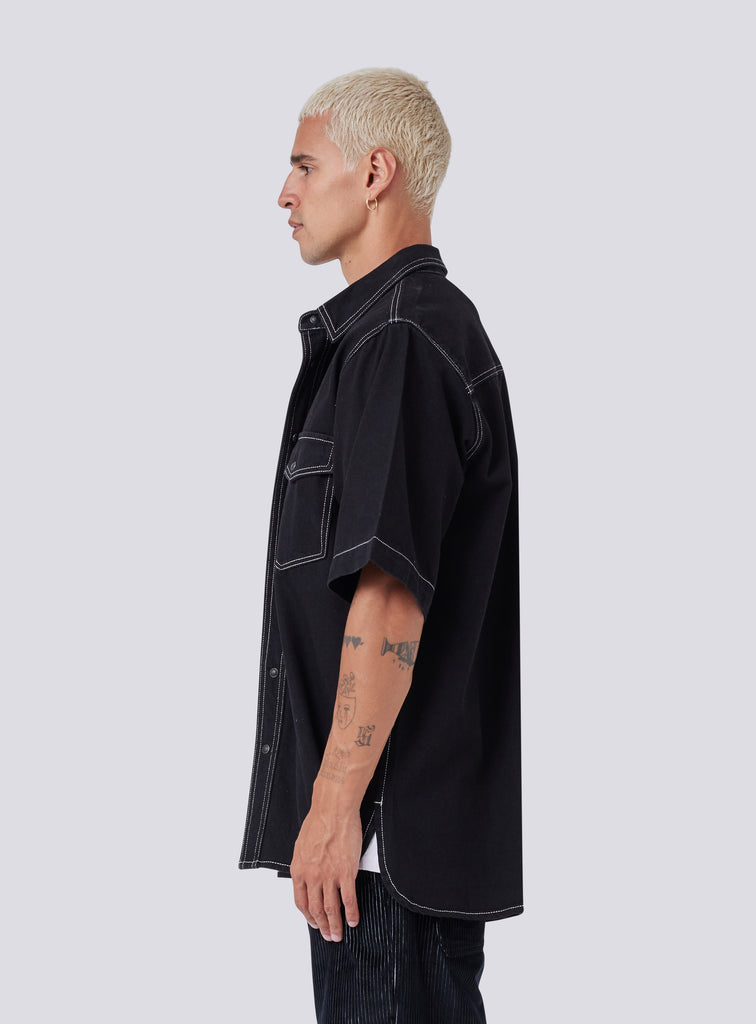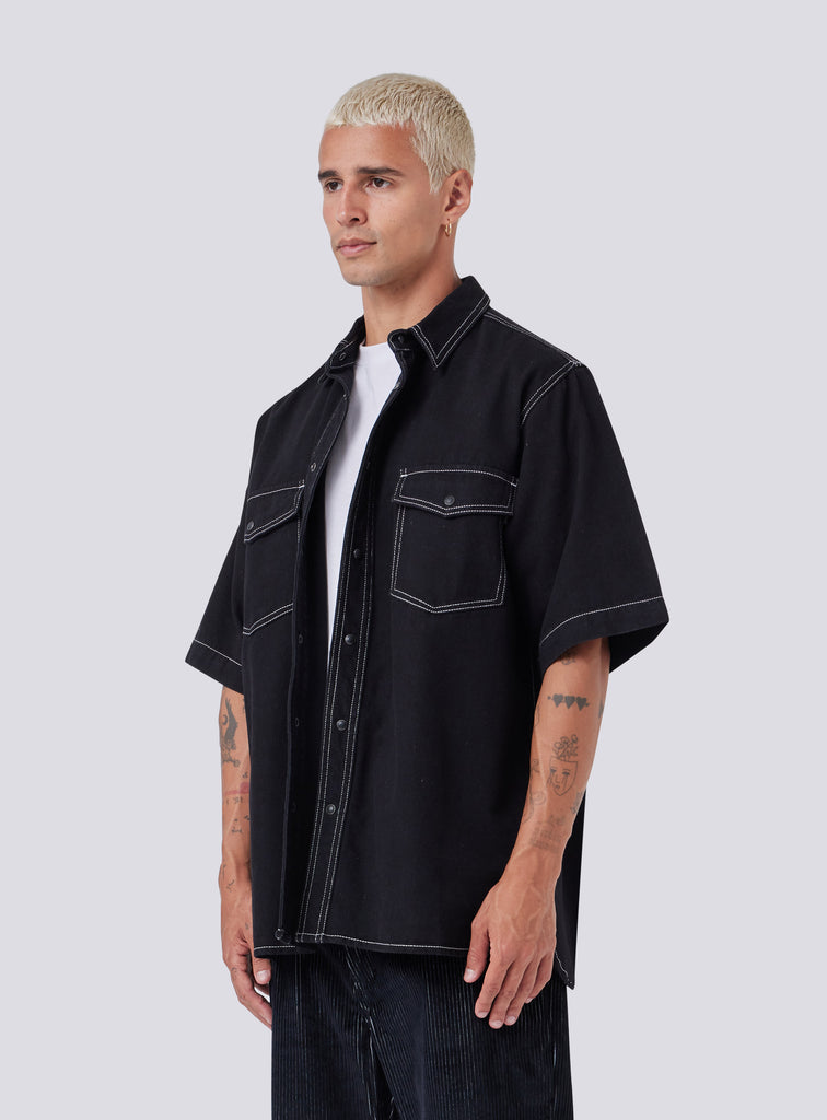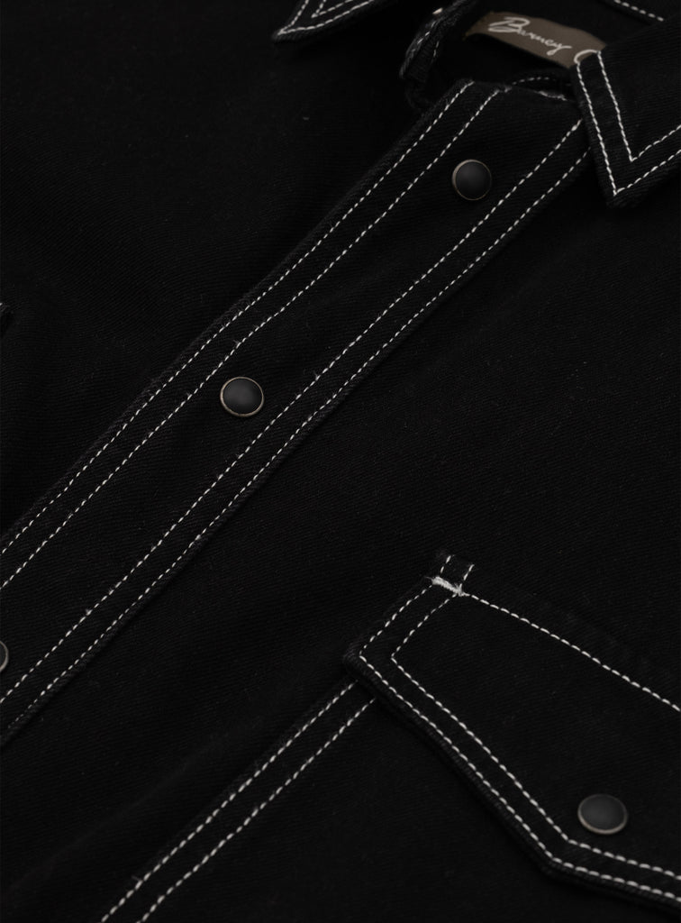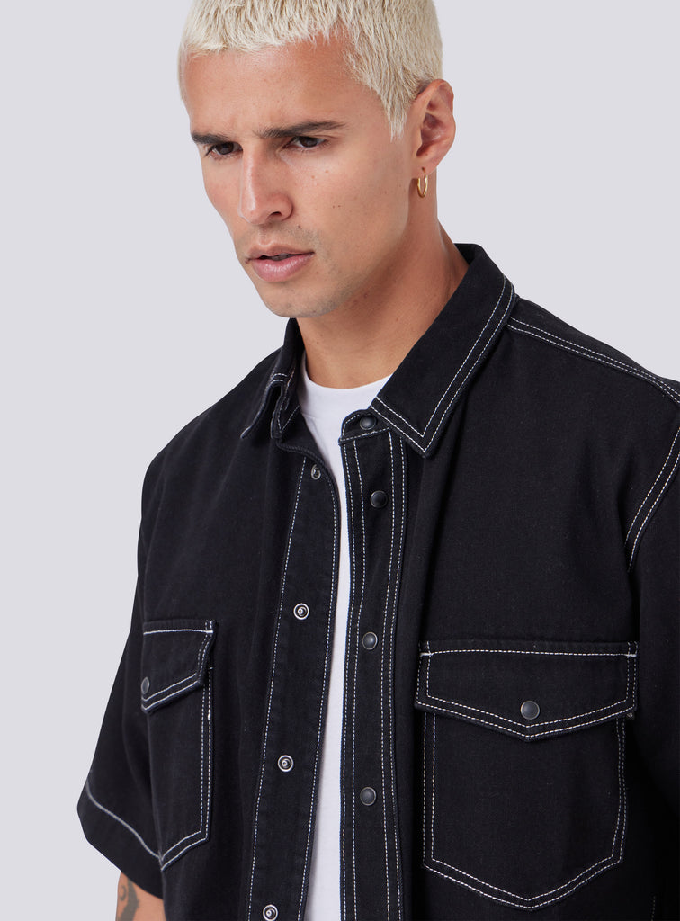 The Homie Shirt in Black Denim is designed to be your next trans-seasonal wardrobe staple constructed from 100% Cotton Denim with contrast stitching and black stud buttons. Layer it up over a tee or tank for a more casual look and button it up when the formalities kick in.