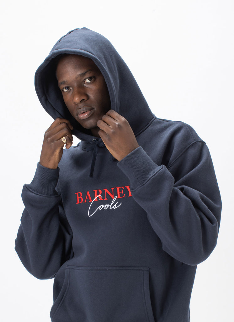 Stay toasty in the Barney Cools Script Embro Hood Sweatshirt in Slate. Constructed with our signature supersoft 330g brushed fleece fabrication. Our sweatshirts are a slouchy fit with a cosy hand feel.