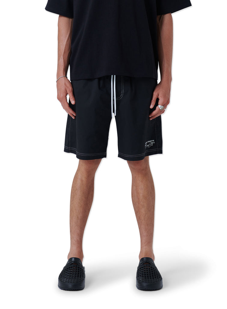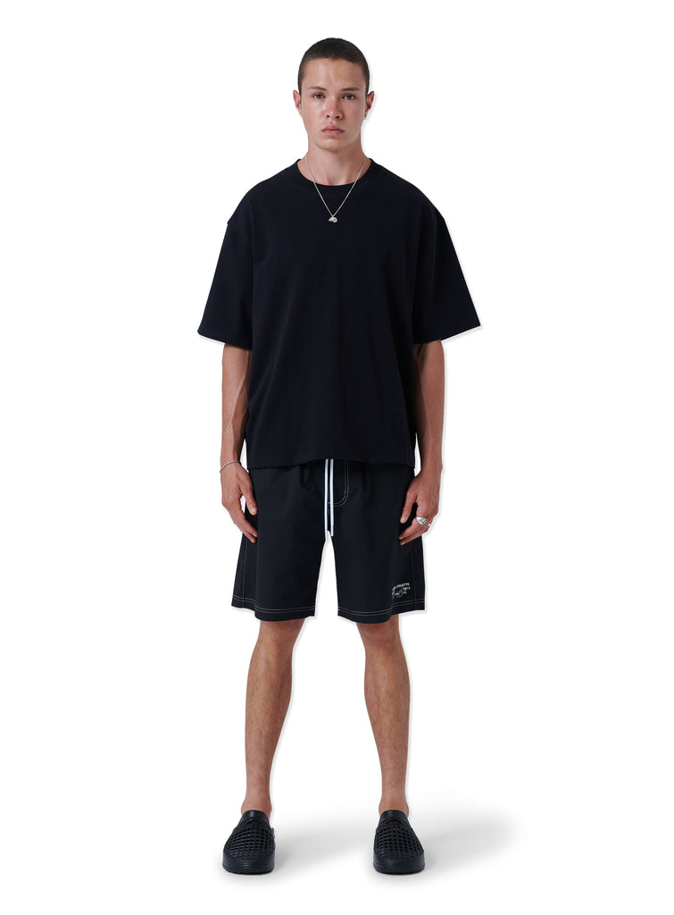 Relaxed fit with an 18" outseam - built with quick-dry stretch fabric that feels like a walkshort but dries like a boardshort. Finished with a rubber badge on the back pocket.