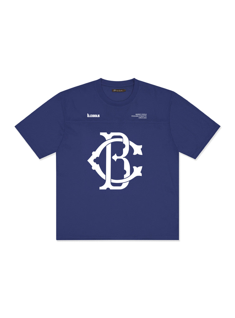 Oversized fit crafted from lightweight basketball mesh, featuring body, chest, and back screen prints with a classic ribbed neckline.