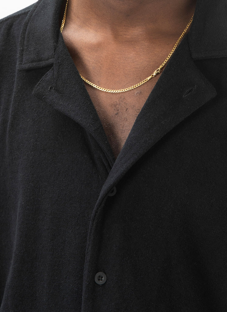 The Holiday Terry Shirt in Black is our breathable terry towelling shirt constructed from a cotton and elastane blend for ultimate everyday comfort. Pair it up with our Terry Sets for maximal poolside pleasure.