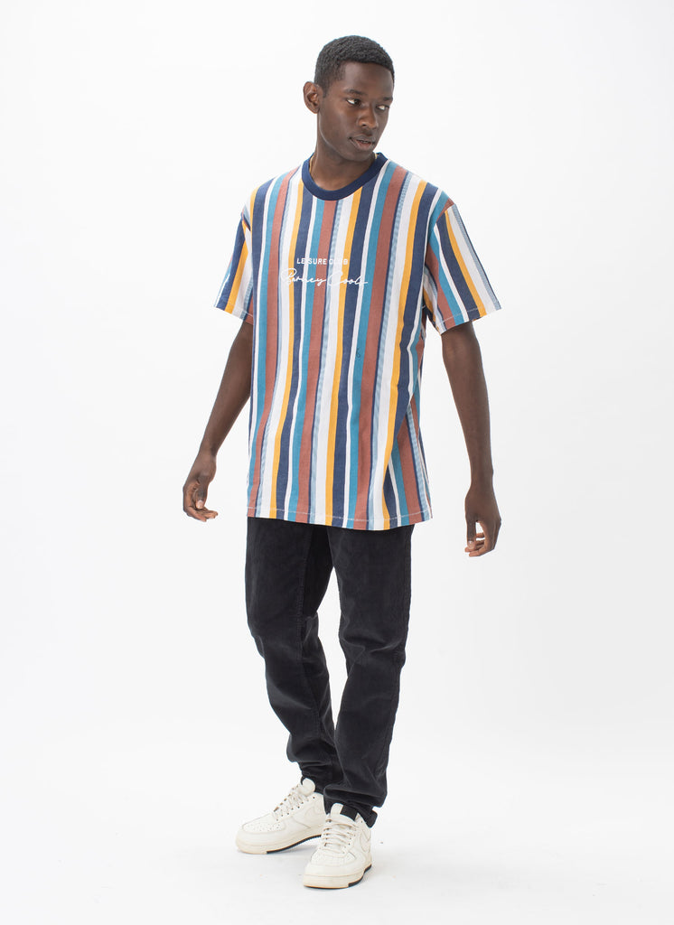 Join the comfort club in the Barney Cools Club Script Tee in 90's Stripe featuring our  Leisure Club script logo embroidery on the chest. Our regular fit tees are constructed from 100% cotton with a soft hand feel.