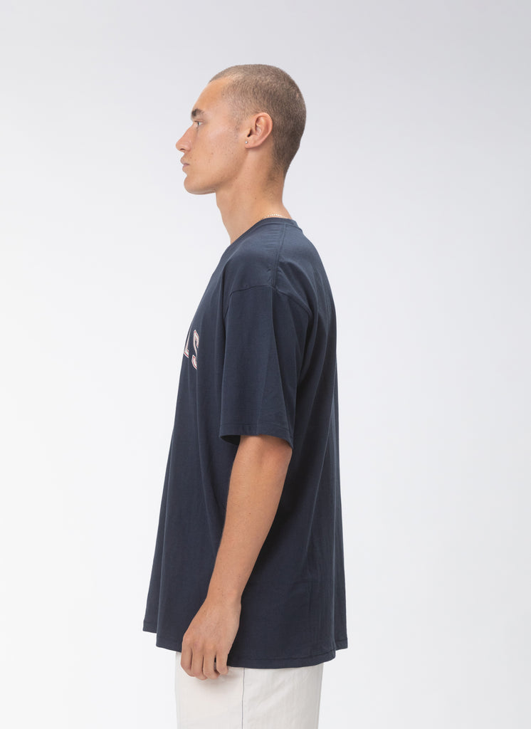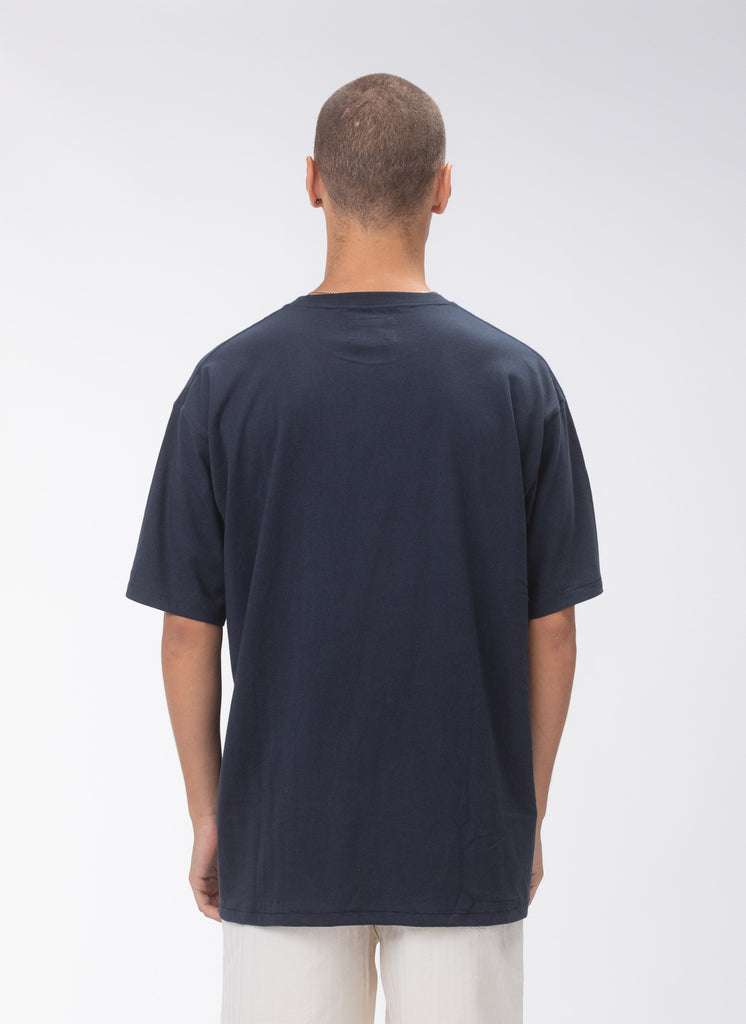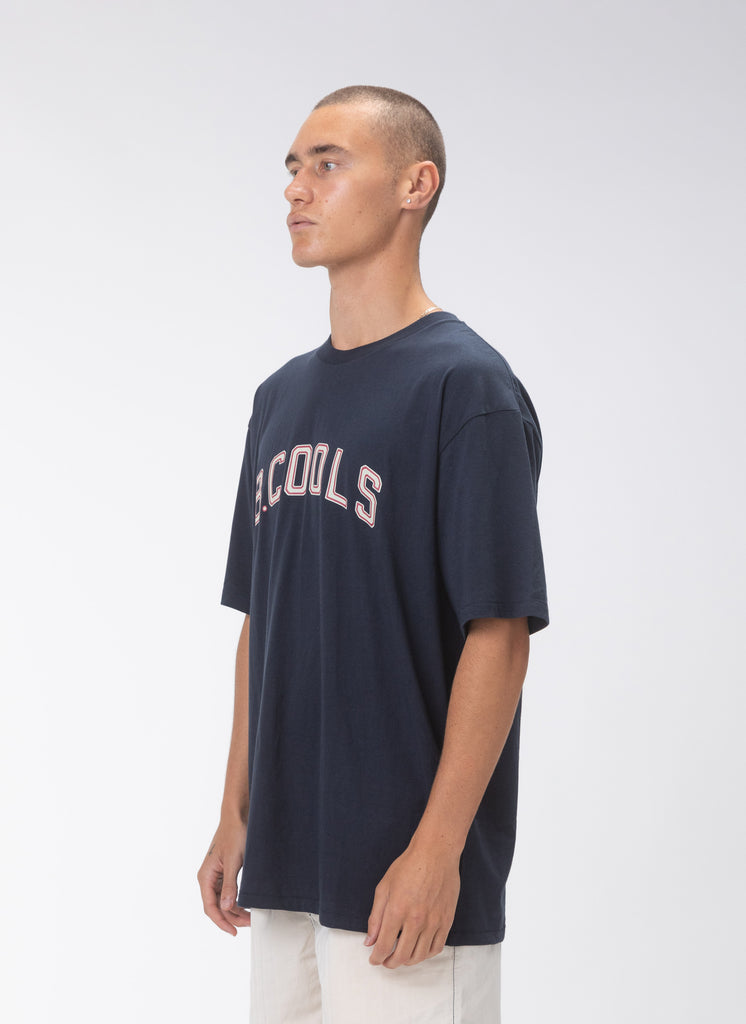 The Barney Cools College Homie Tee in Slate is our oversized streetwear essential (about 2" inches longer than your average tee) with a front printed graphic logo. Our recyCOOLS homie fit tees are constructed from 100% recycled cotton with a soft hand feel.