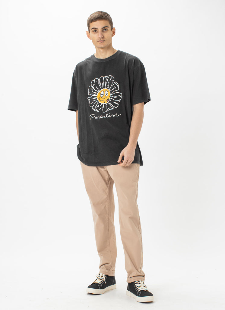 Get some flower power in the Paradise Homie Tee in Pigment Black. Our oversized streetwear essential (about 2" inches longer than your average tee) with a neat centre chest graphic print.Our homie fit tees are constructed from 100% cotton with a soft hand feel.