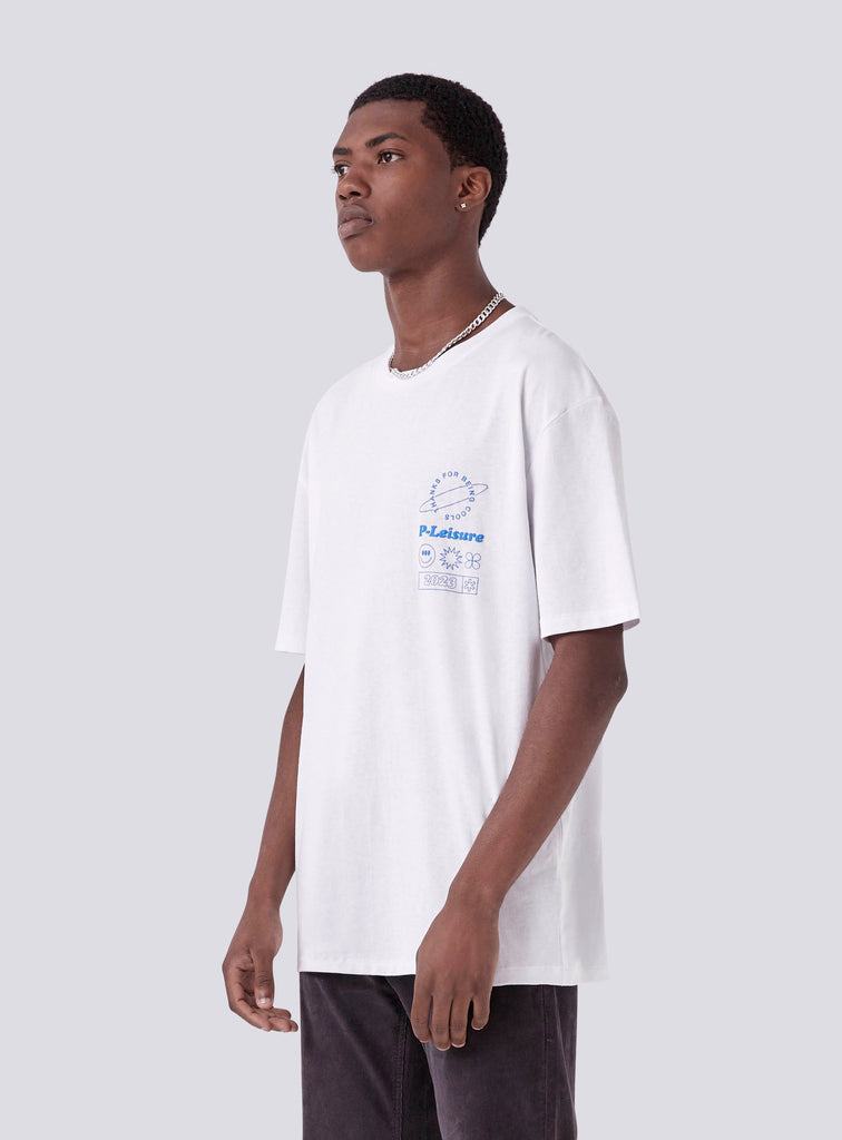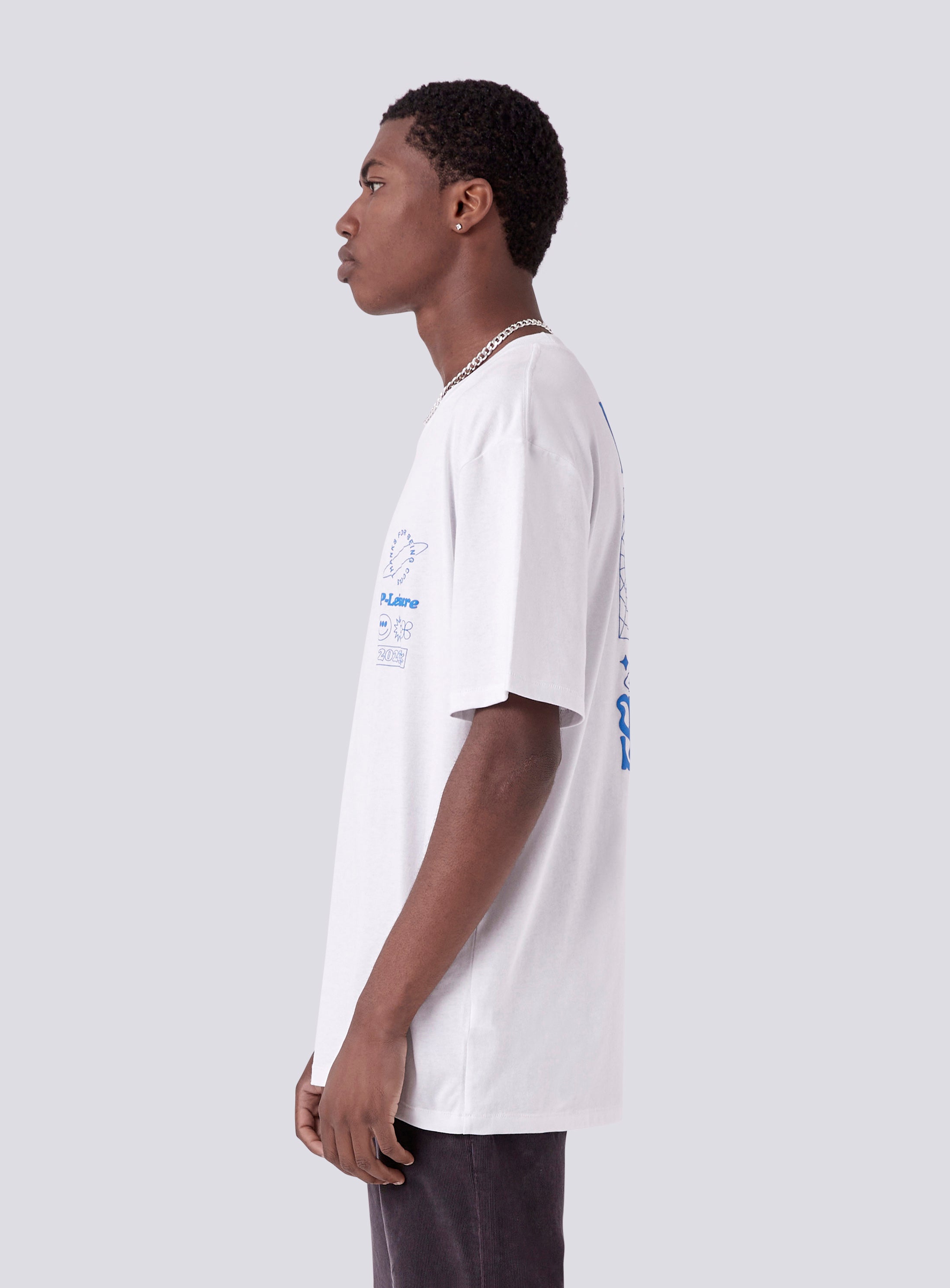 The Sounds Tee in White is our oversized streetwear essential. Produced on 100% recycled 245g cotton jersey with a graphic print.