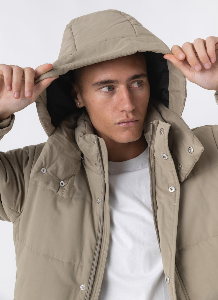 • 100% Polyester windproof shell fabric • Polyester down wadding • Signature two tone lining • Detachable hood and inset rib cuffs