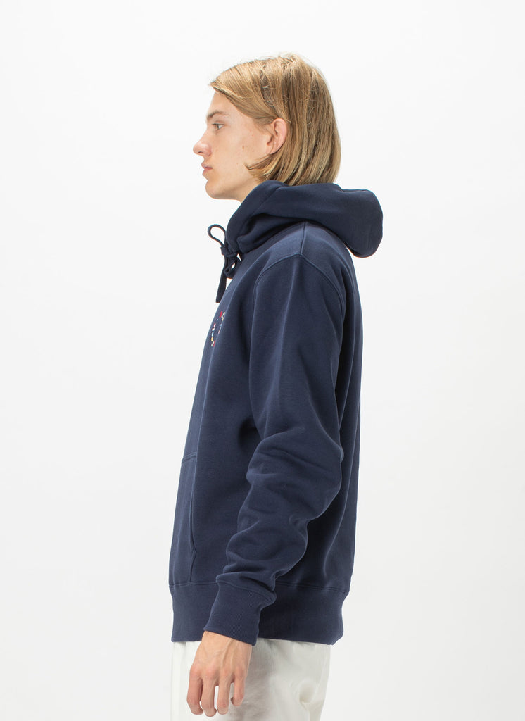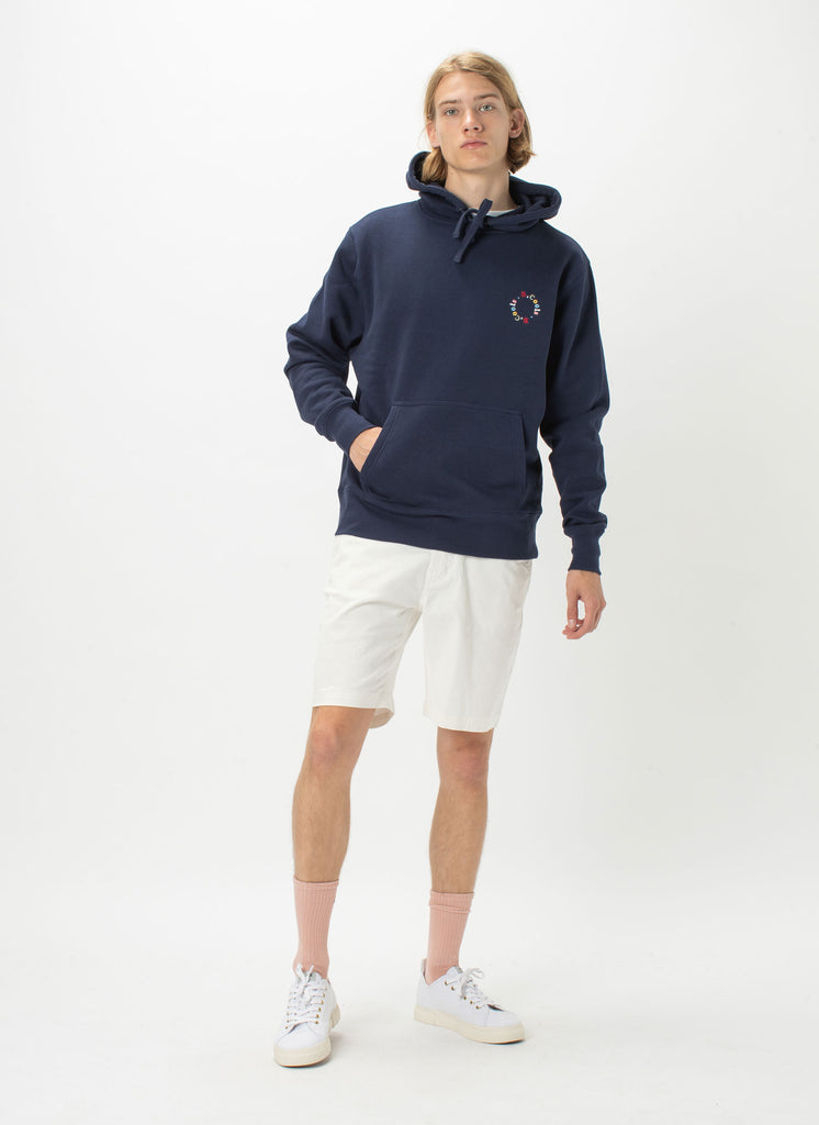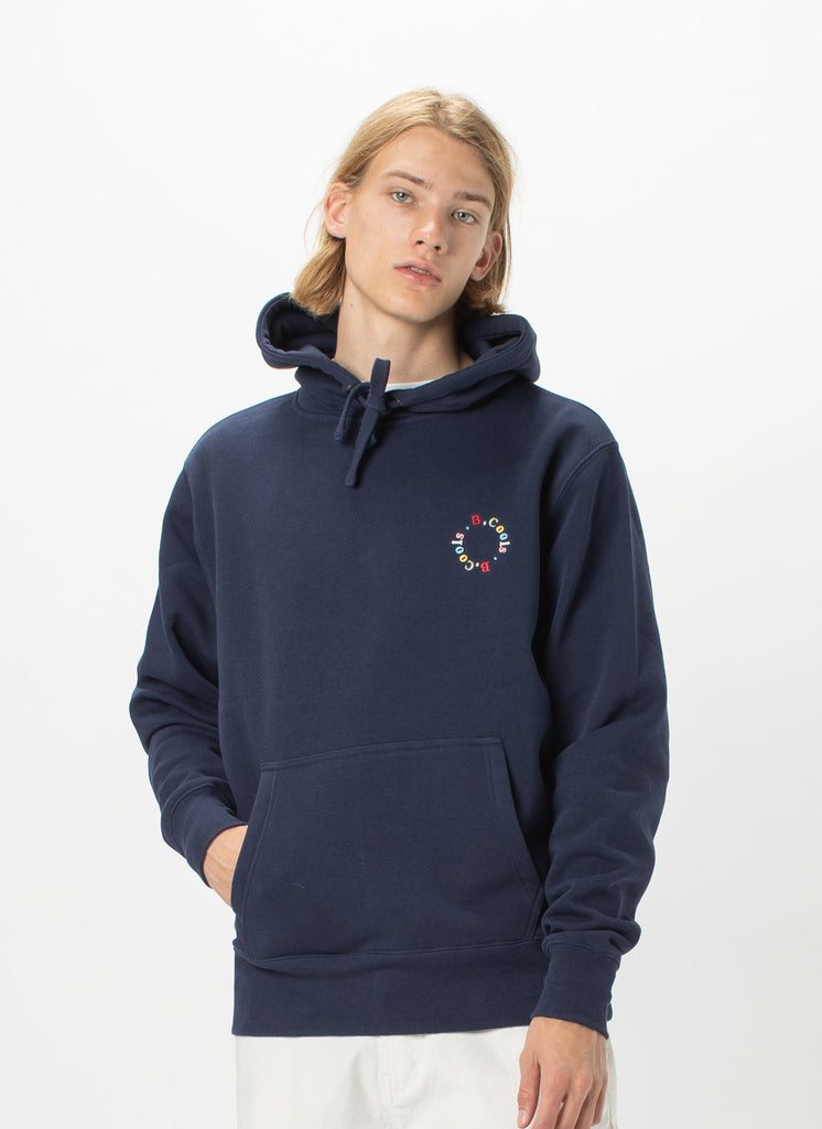 B.Cools, not cold in the Navy Circle Hood Sweatshirt. Featuring a neat retro logo print and our signature feel-good relaxed cotton fleece fabrication. Our sweatshirts are a slouchy fit with a cosy hand feel.