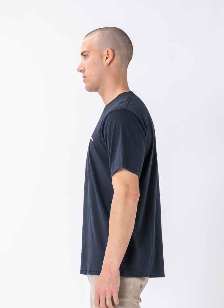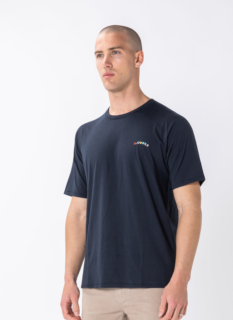 The Barney Cools B.Nostalgic Embro Tee in Slate. A certified everyday essential with a neat chest embroidery. Our recyCOOLS classic fit tees are constructed from 100% recycled cotton with a soft hand feel.