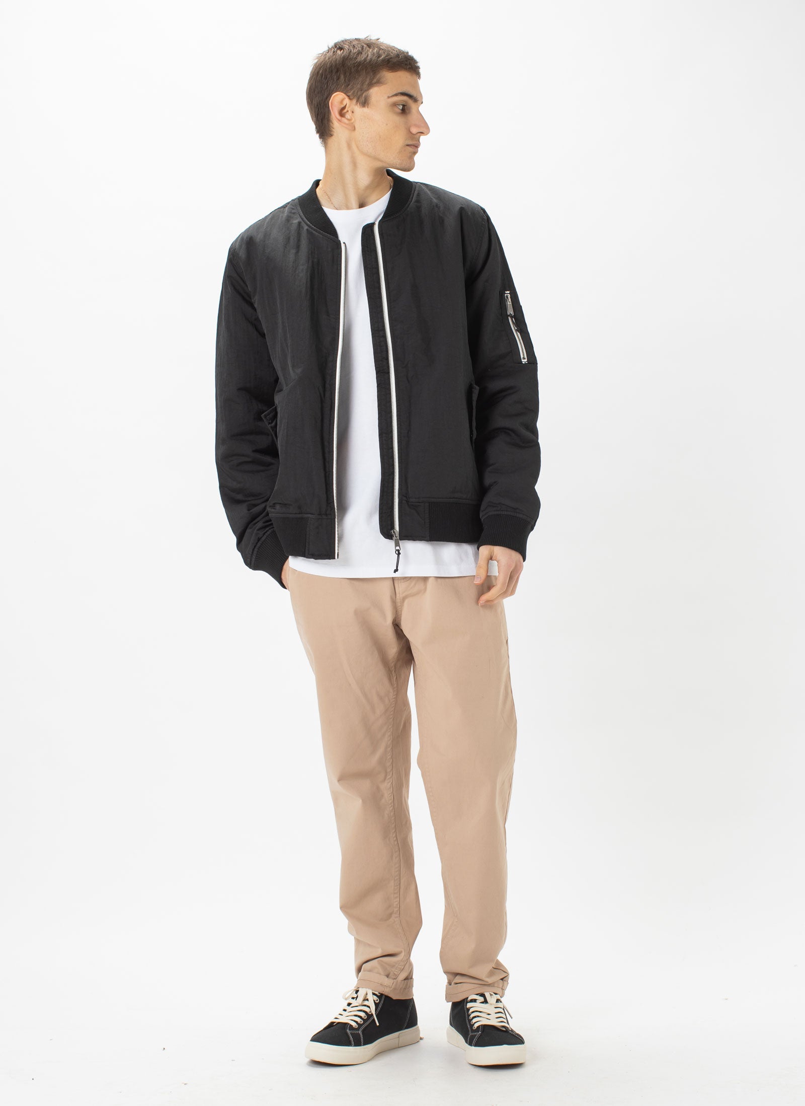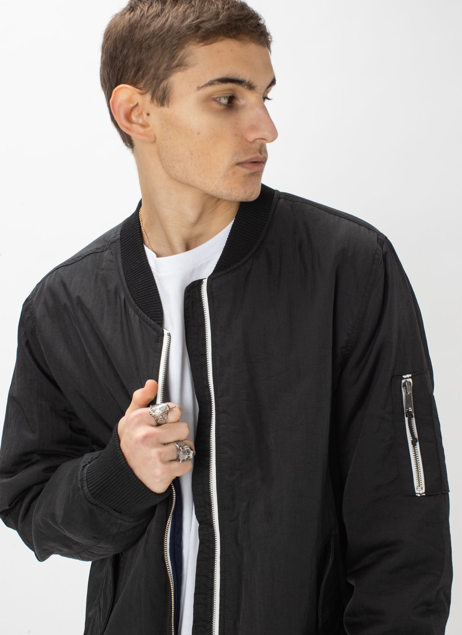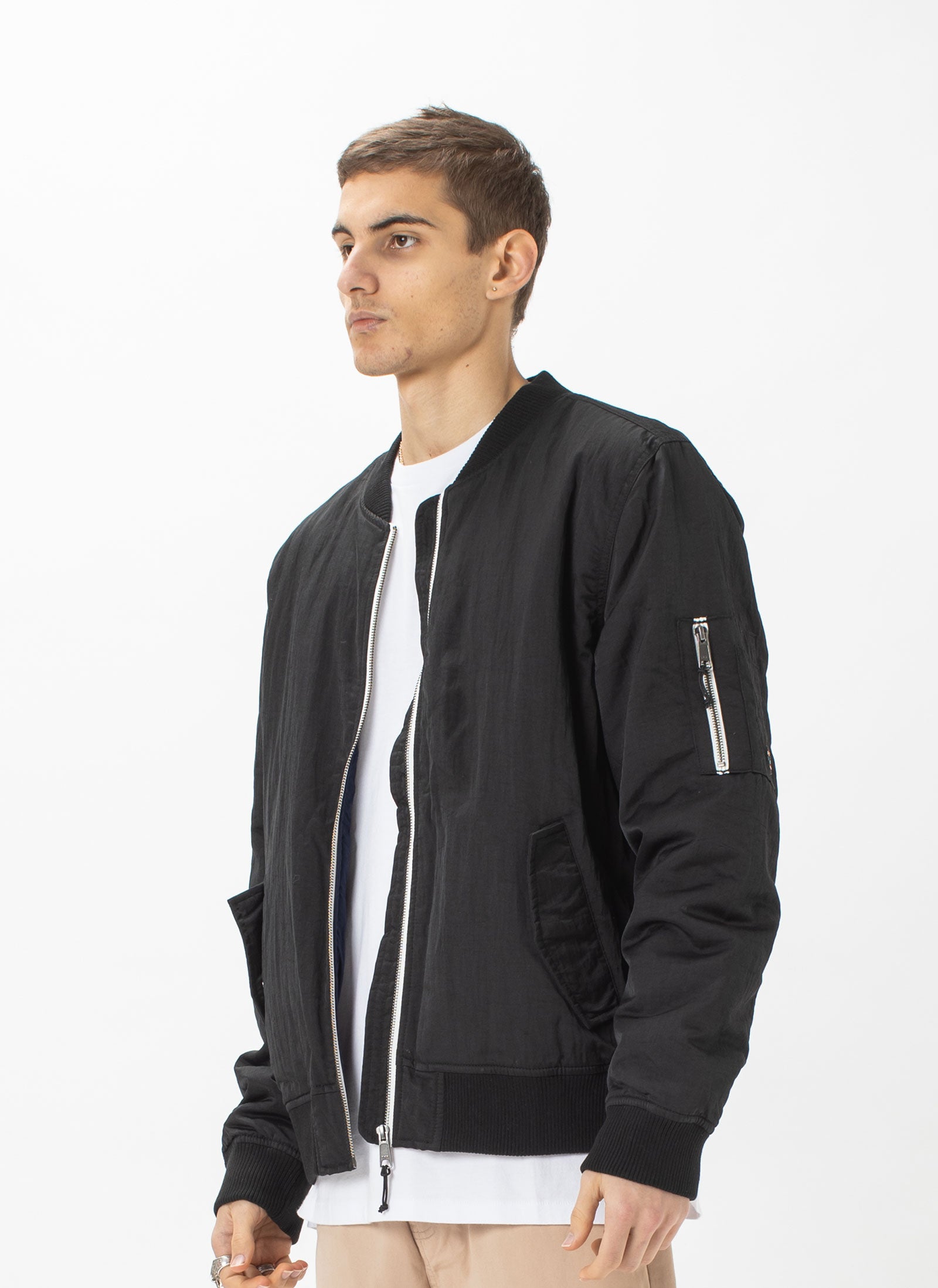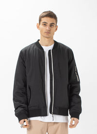 The MA-1 Bomber Jacket in Black is an ode to the Cools classic VIP Bomber. Our signature jacket perfect for layering with a multi-function zip pocket on the left sleeve.
