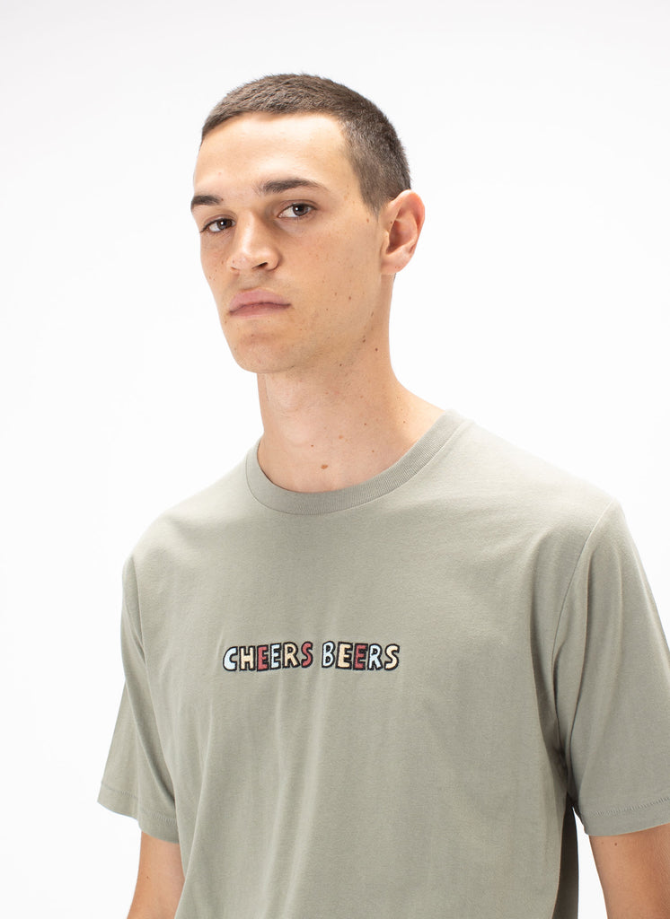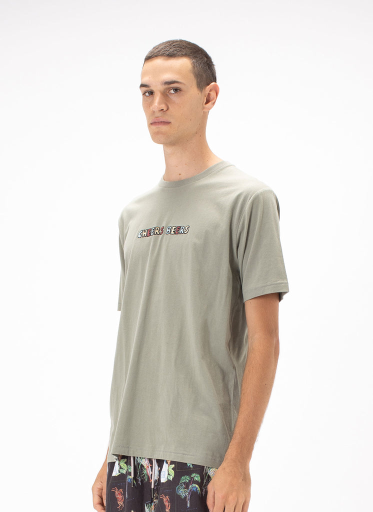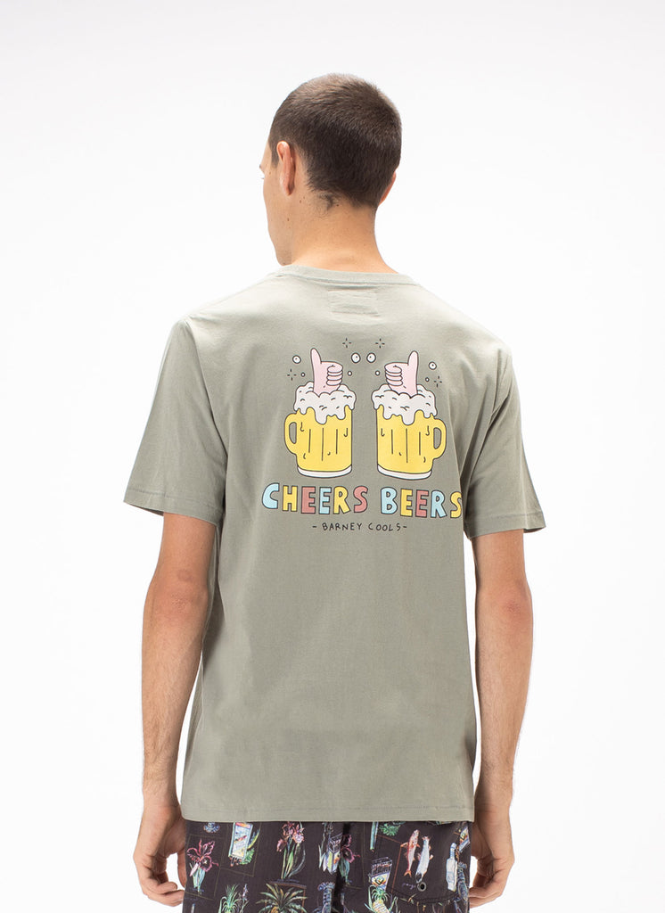 Our beer o'clock essential. The Cheers Beers Tee in Sage is our off-duty favourite featuring a schooner inspired chest and back print.Our recycOOLS regular fit tees are constructed from 100% recycled cotton with a soft hand feel.
