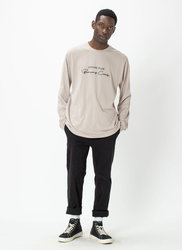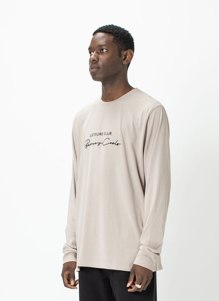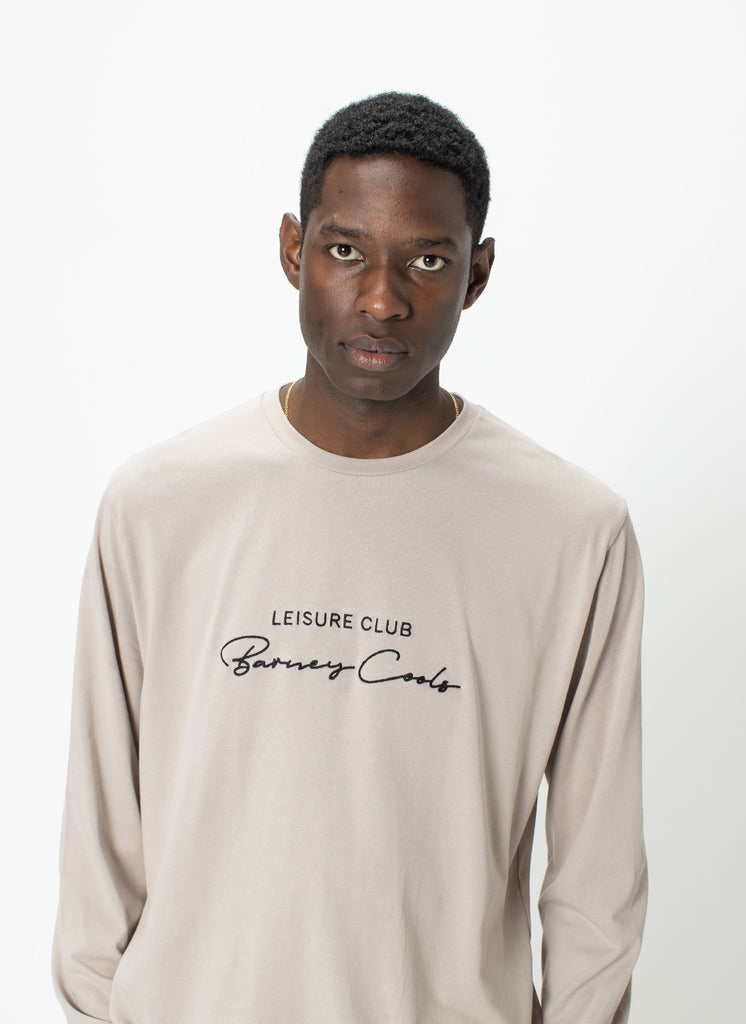 The Barney Cools Club Script Long Sleeve Tee in Ash - our work-to-weekend embroidered logo essential, perfect for layering. Our recycOOLS regular fit tees are constructed from 100% recycled cotton with a soft hand feel.