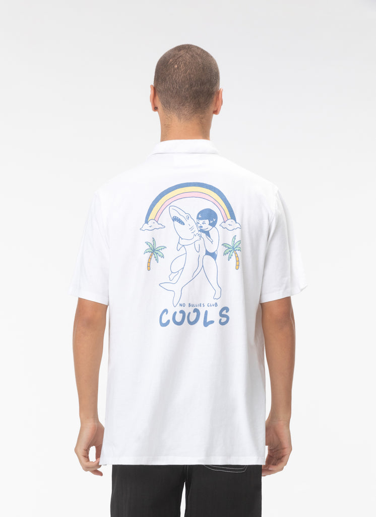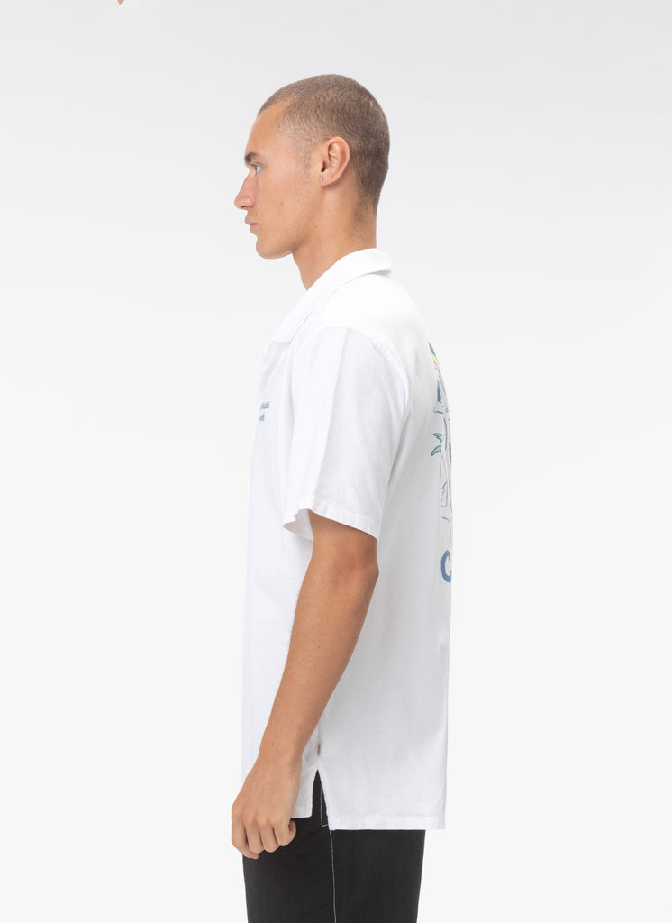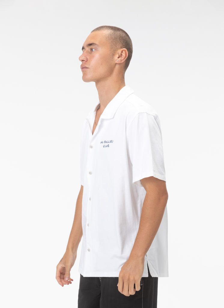 The Barney Cools Comfy Shirt in White was made for a hot summers day on the sauce. Our cotton jersey party shirt with a camp-collar neckline - constructed from an ultra soft tee shirt fabrication.