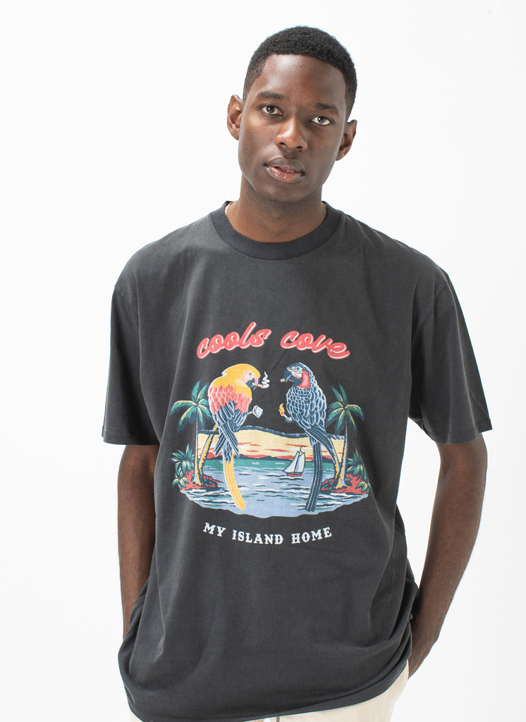 Find your island home in the Cools Cove Homie Tee in Pigment Black. Our oversized streetwear essential (about 2" inches longer than your average tee) with a neat centre chest graphic print. Our homie fit tees are constructed from 100% cotton with a soft hand feel.