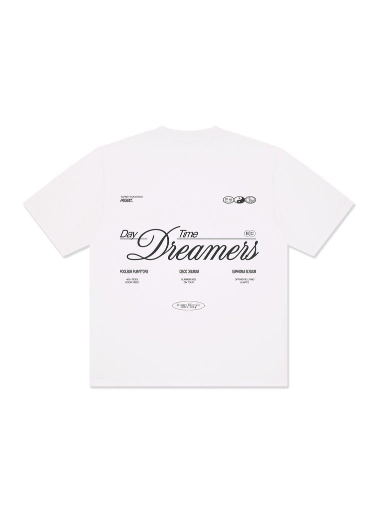 The DTD (Day Time Dreamers) Tee. Light puff print logos on front and back. 260g heavyweight cotton fabric, relaxed fit tee in standard length with thicker neckline.