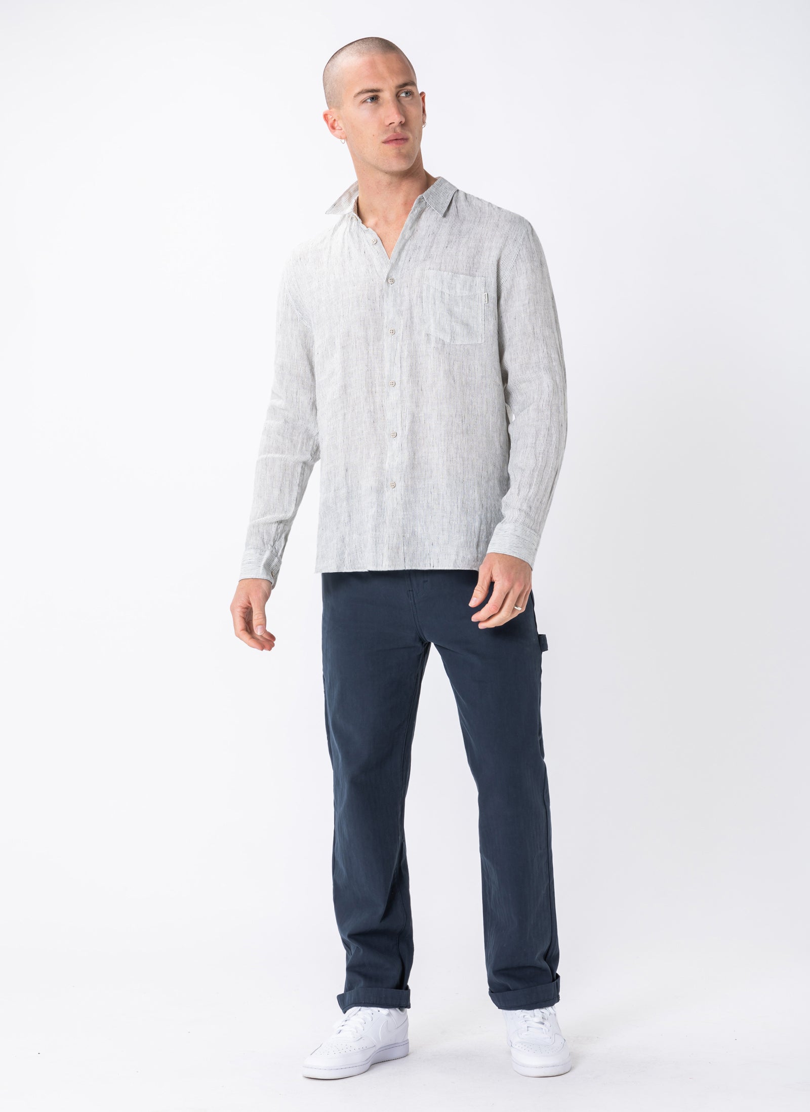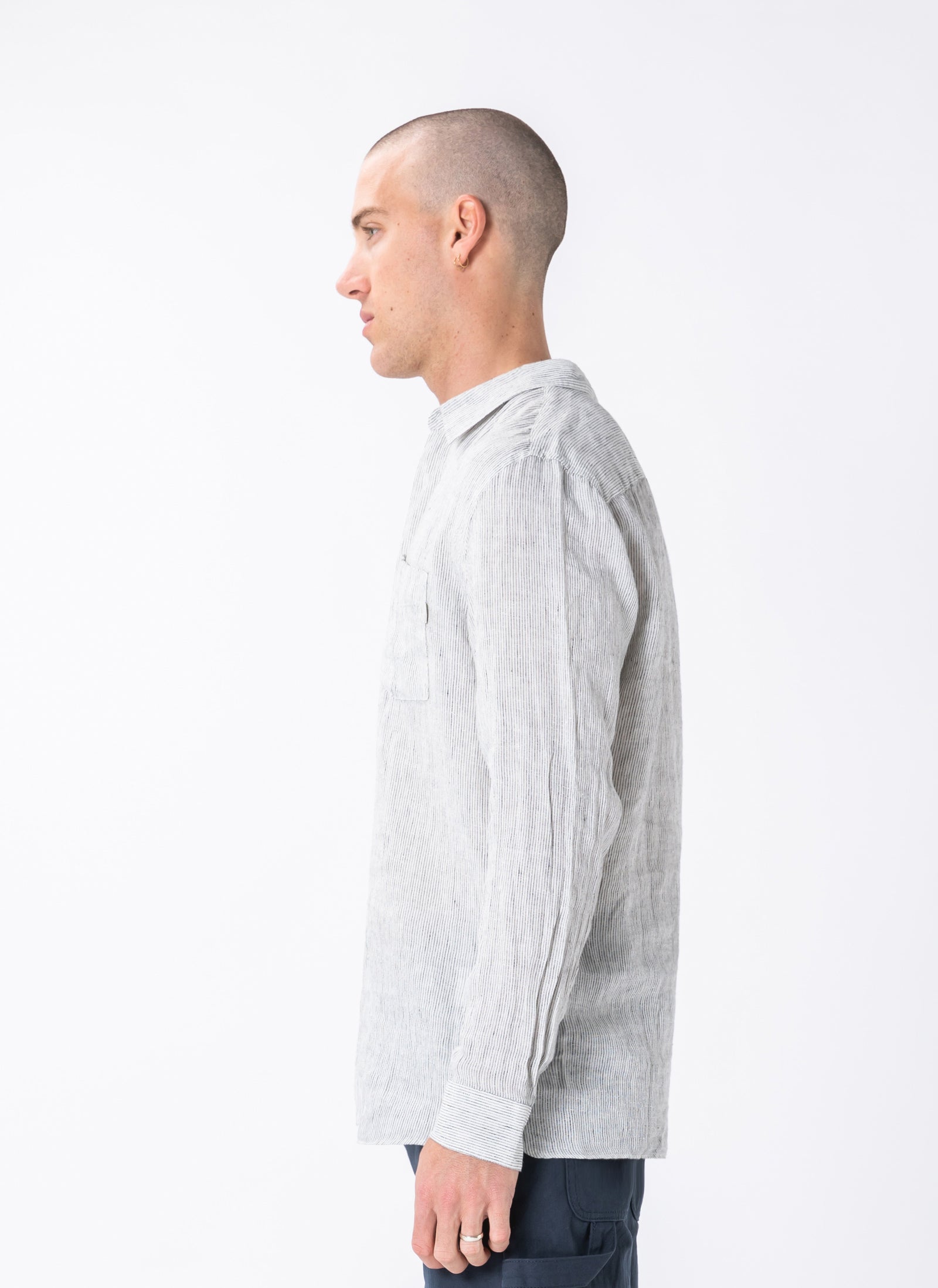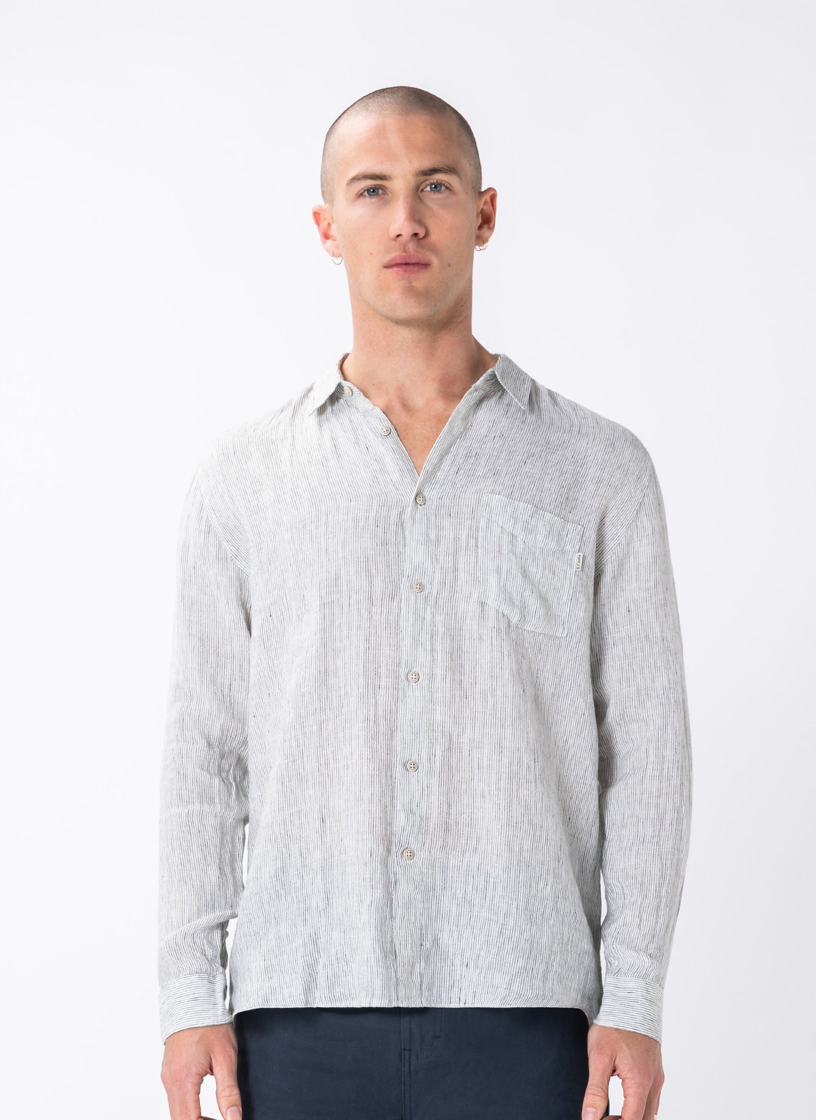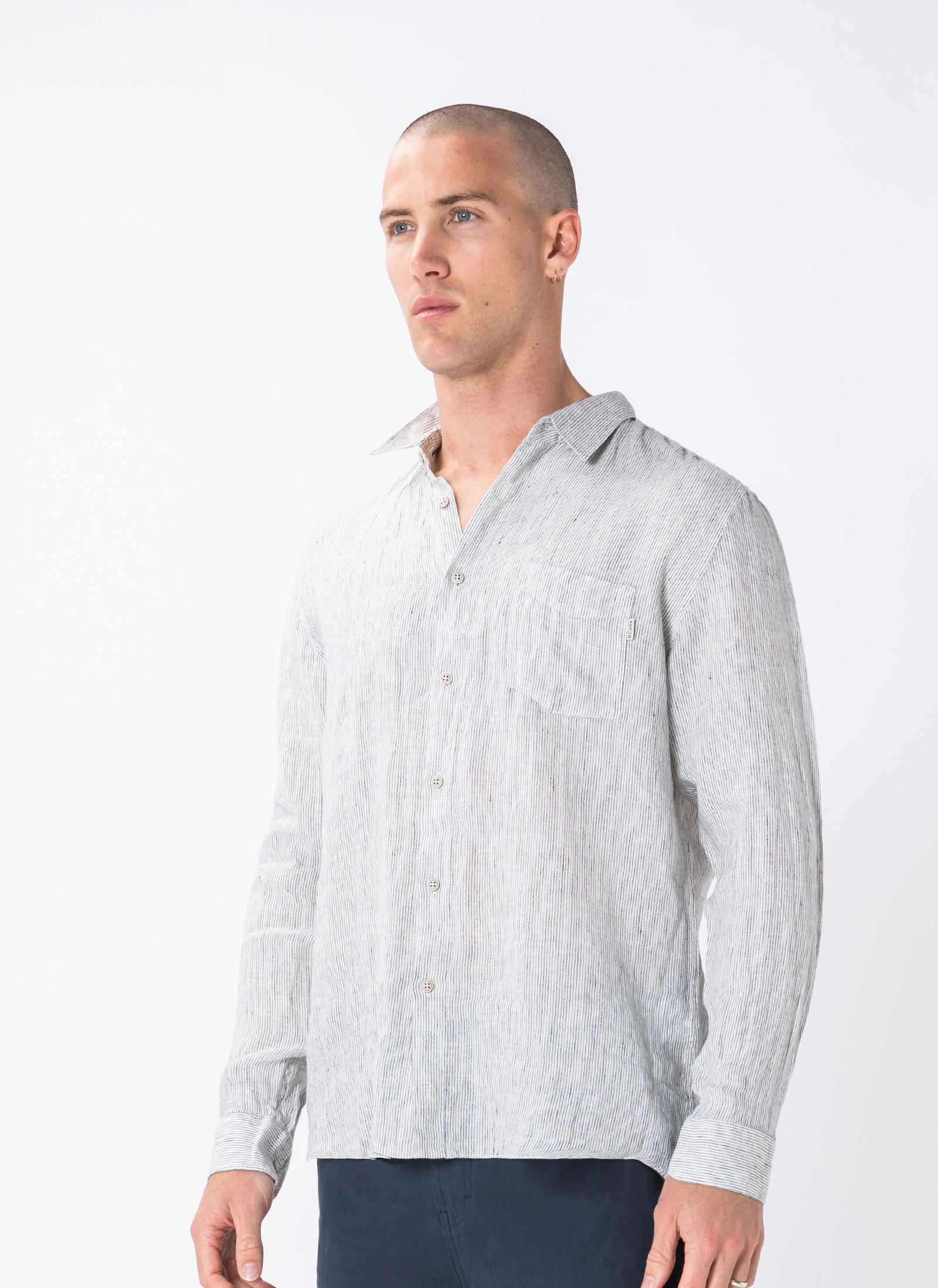 Spice up your sun-drenched staples with the Barney Cools Holiday Linen Long Sleeve Shirt in White Stripe. Ultra lightweight, breathable and soft linen. That effortlessly cool summer shirt, not just easy on the eye but also comfortable to wear.