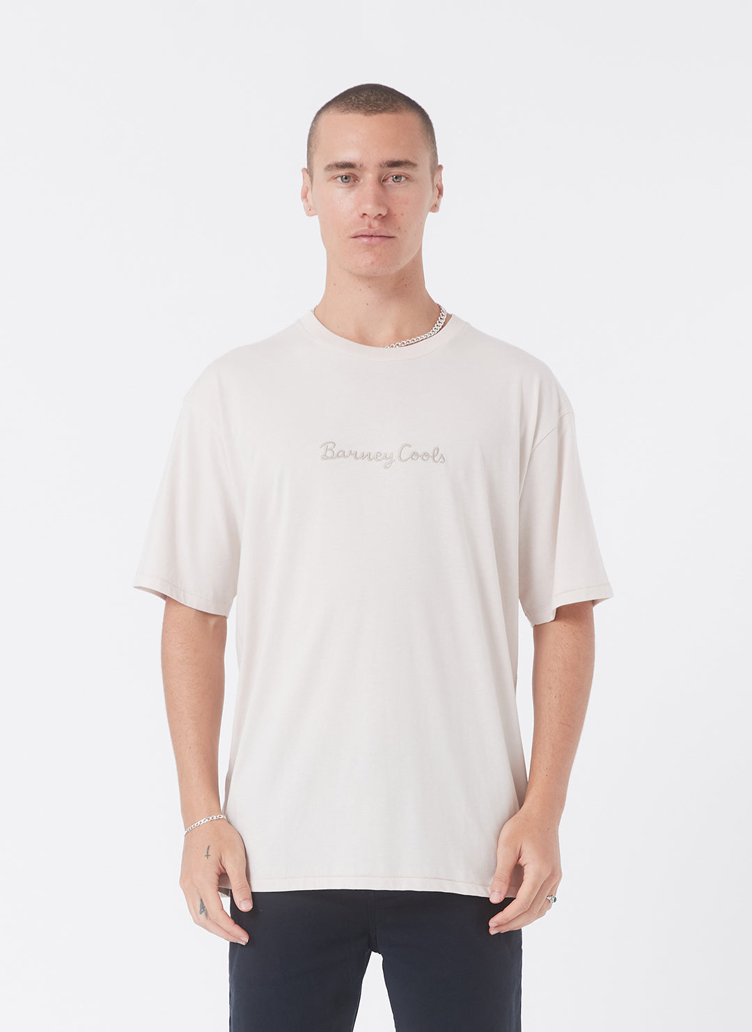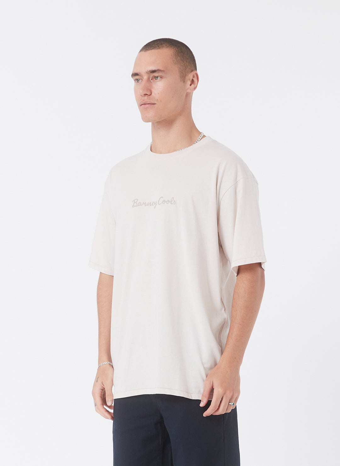 Barney Cools Signature Logo embroidered on 100% Recycled 180g Cotton Jersey. Our 'Homie' fit tees are oversized and like wearing 2 x sizes up with slightly thicker neckline.
