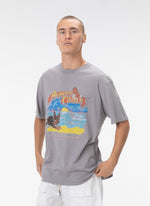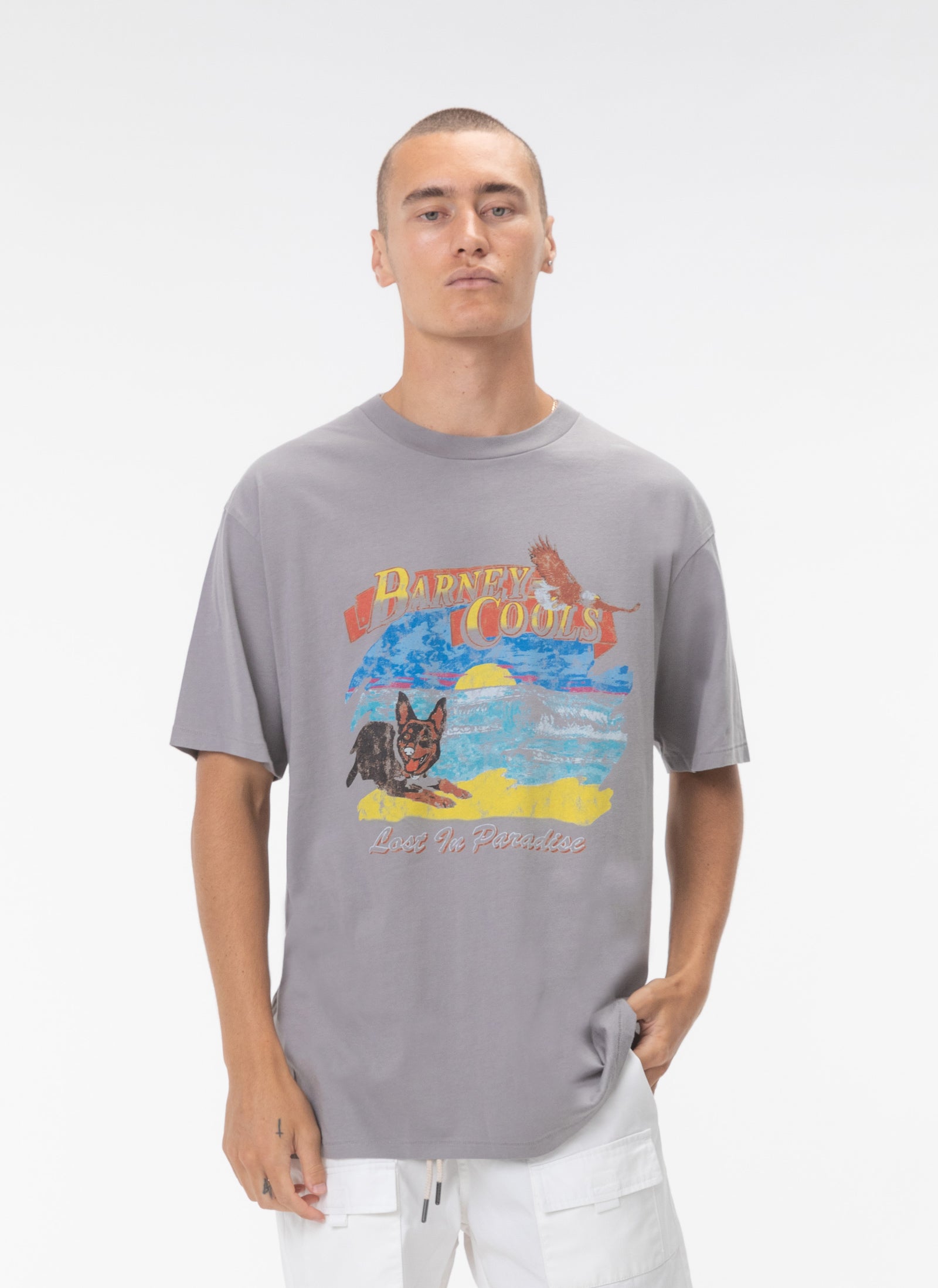 Get lost in a poolside paradise in the Barney Cools Lost Paradise Tee in Smoke. Our everyday tee featuring a vintage inspired chest hit. Our regular fit tees are constructed from 100% recycled cotton with a soft hand feel.