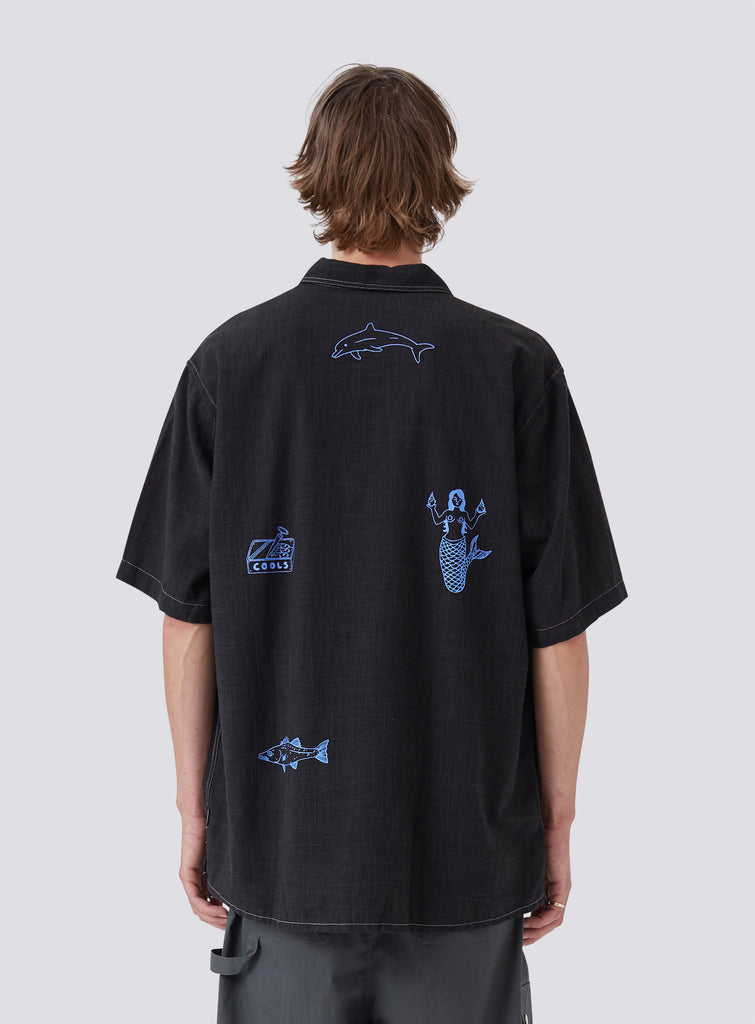 The Palmero Shirt in Black is designed to be your next summer-ready wardrobe staple constructed from100% Cotton with custom screenprints on the front and back. Layer it up over a tee or tank for a more casual look and button it up when the formalities kick in.
