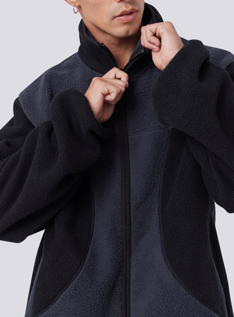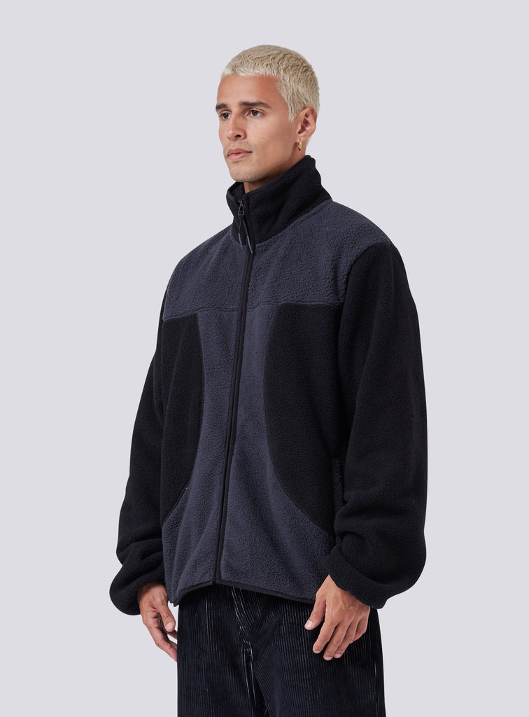 Stay toasty in the Polar Jacket in Black, our relaxed fit zip pullover with chest embroidery, pull cord and elastic cuff on 300g polar fleece.