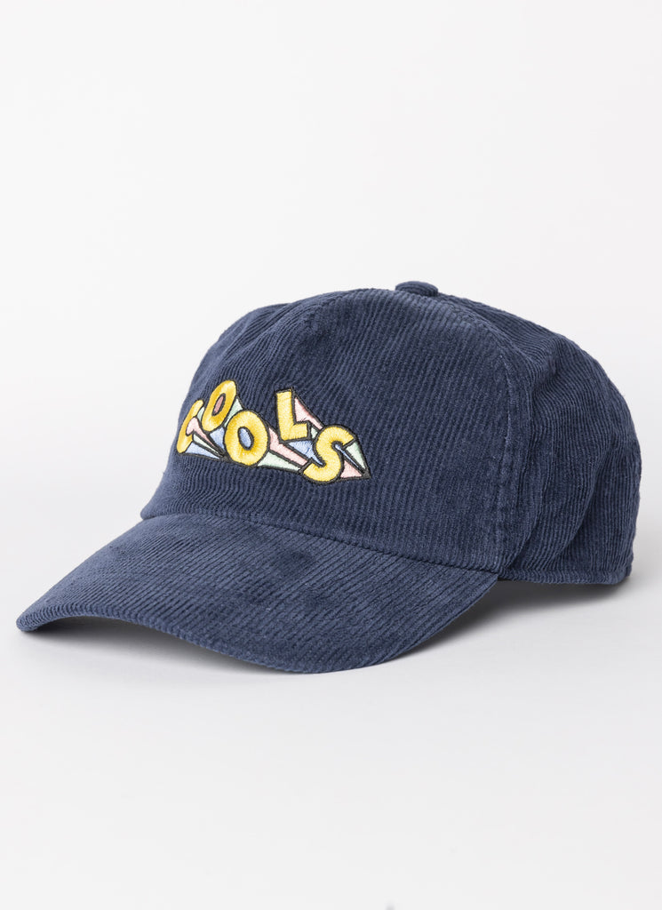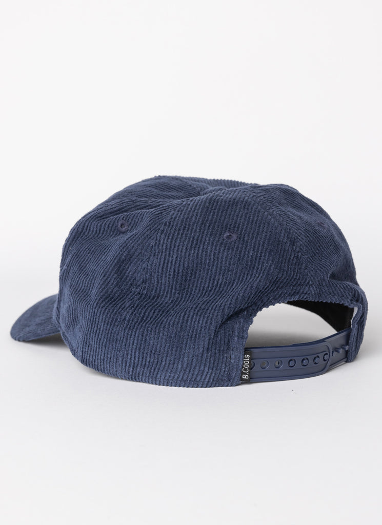 The Barney Cools Pop Art 5-Panel Cap in Navy Corduroy - our signature snapback with a five panelled construction and snapback closure.