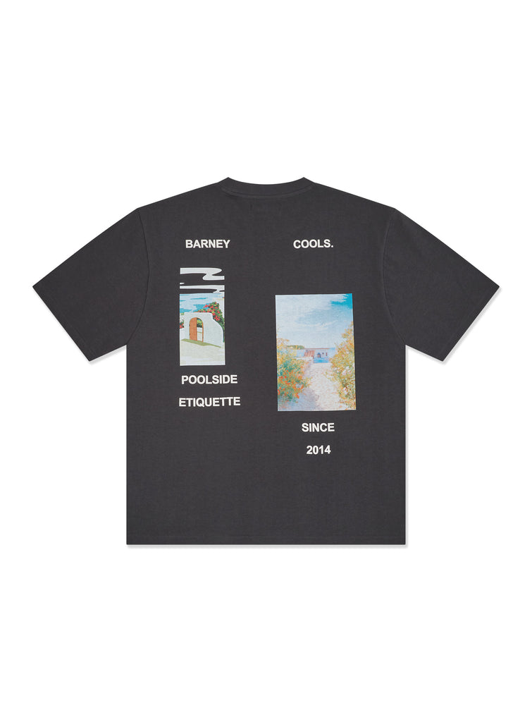 The Scenic Tee. Digital print back artworks trimmed with light puff print front & back logos. 260g heavyweight cotton fabric, relaxed fit tee in standard length with thicker neckline.