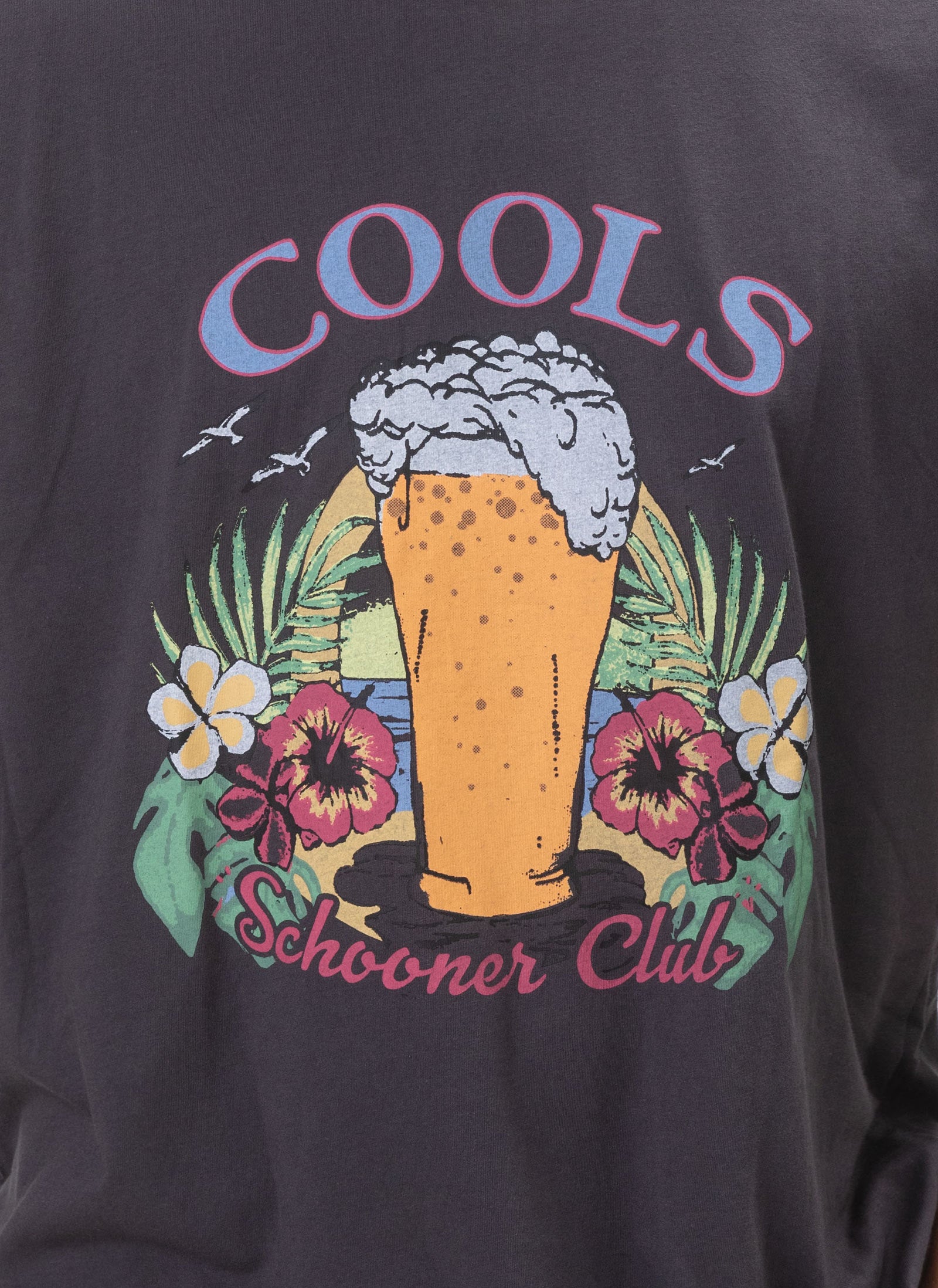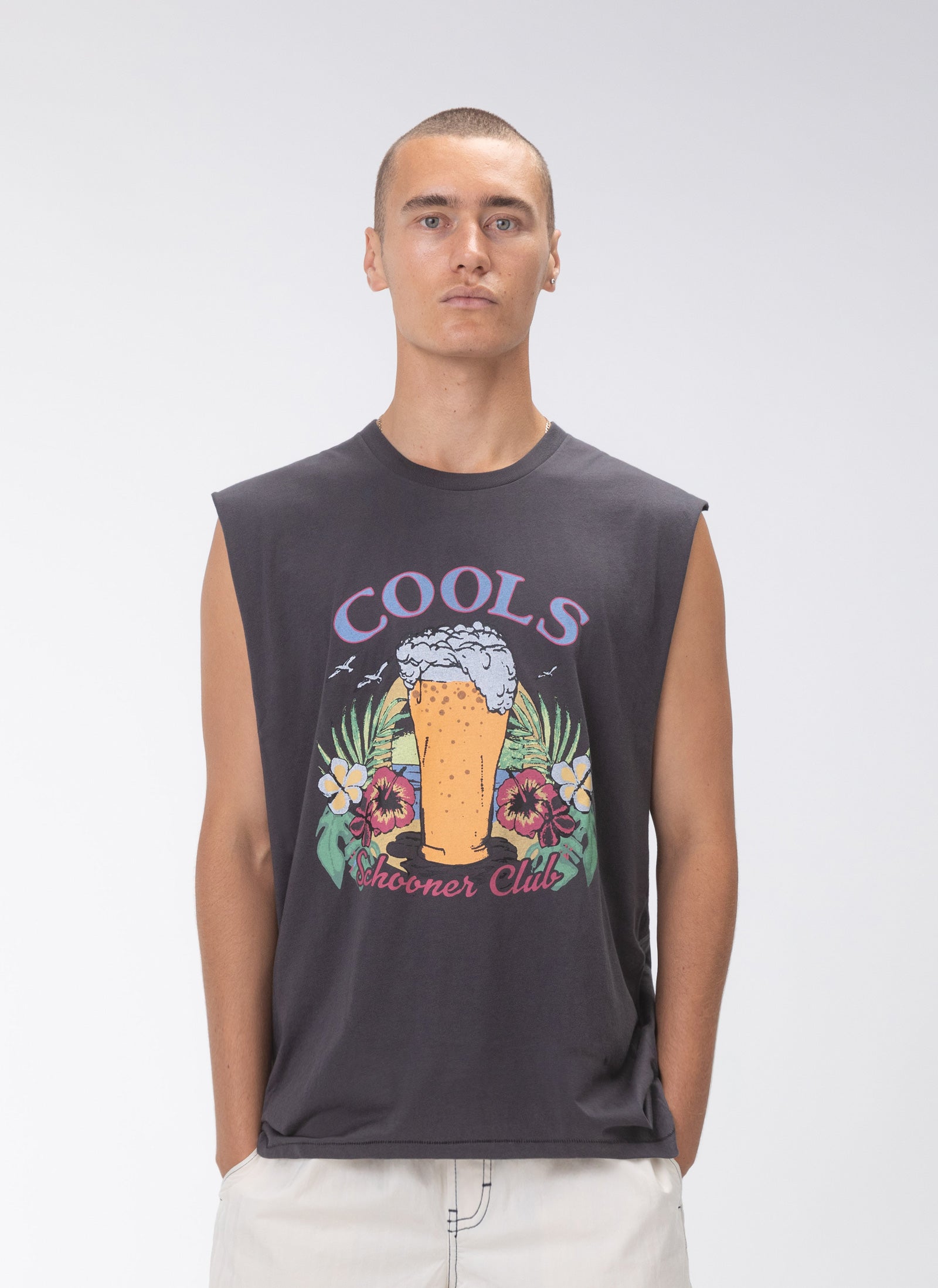 Our happy hour essential. The Schooner Club Muscle in Pigment Black is our off duty favourite featuring a pub-inspired chest and back print. Our recyCOOLS regular fit tees are constructed from 100% recycled cotton with a soft hand feel.