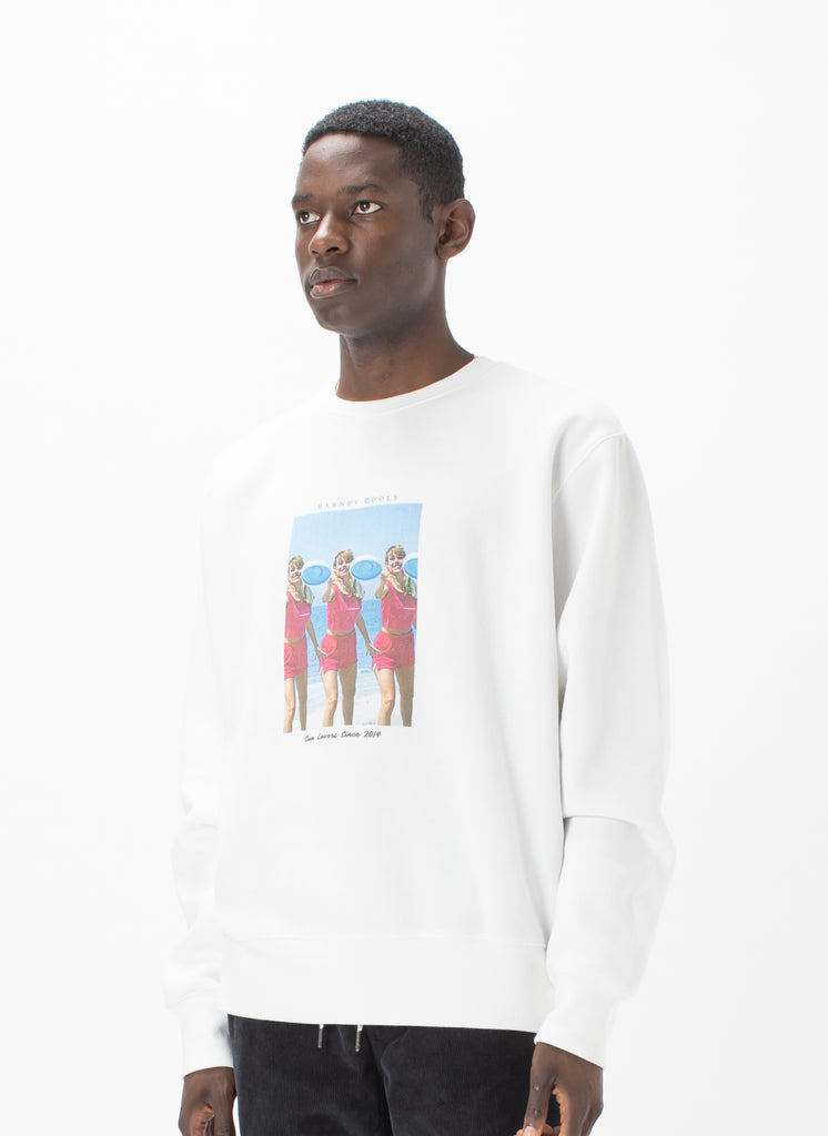The Sun Lovers Crew Sweatshirt in White is our everyday throwover. Constructed with our signature supersoft 330g brushed fleece fabrication. Our sweatshirts are a slouchy fit with a cosy hand feel.