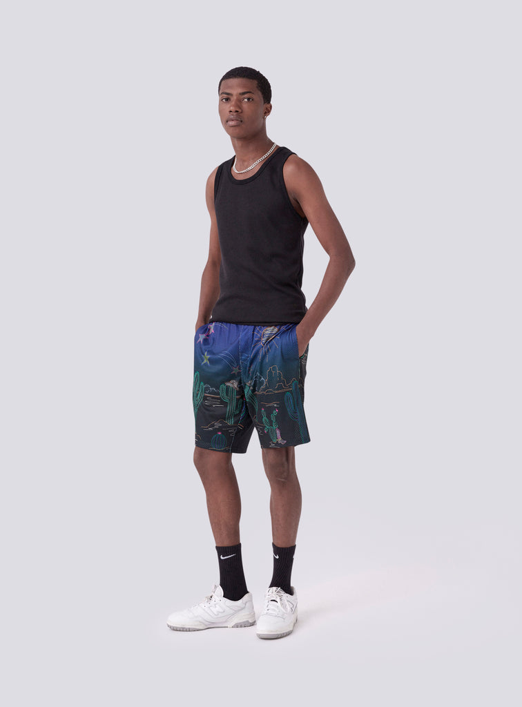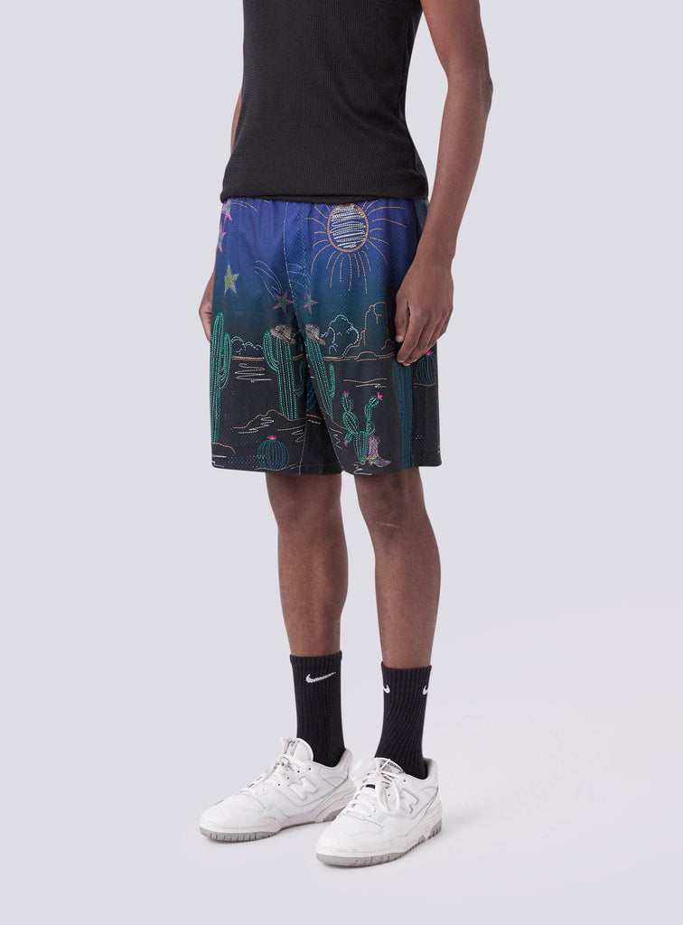 The Vacay Short in Disco Nights is a custom printed mesh basketball short made from a breathable mesh fabric inspired by vintage sport wear. Featuring an internal waistband and a three pocket design. Pair it with the matching Vacay Shirt Disco Nights for the perfect festival fit.