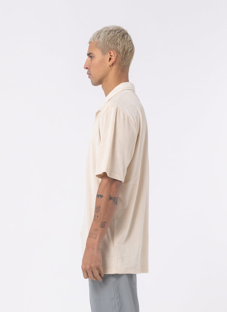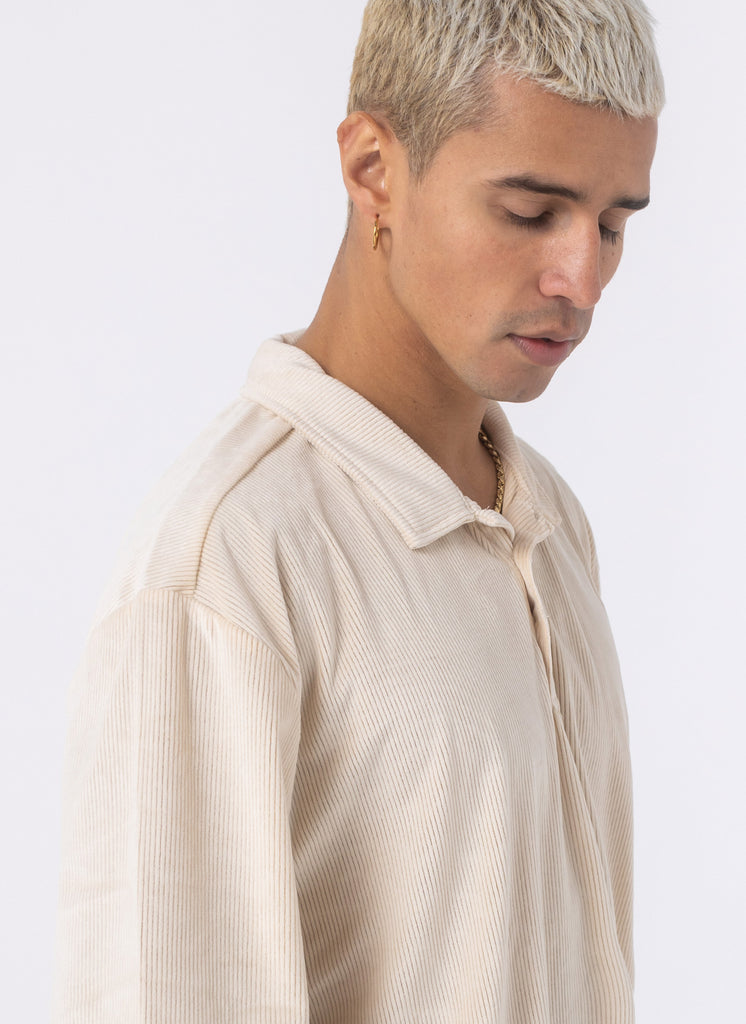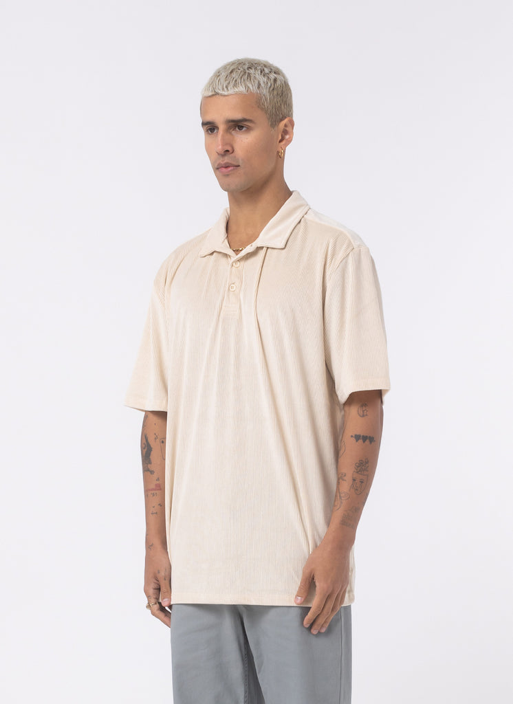 The Velour Cord Polo in Beige is our premium poolside polo constructed from a blend of smooth cotton corduroy and ultra-soft retro velour for ultimate everyday comfort.